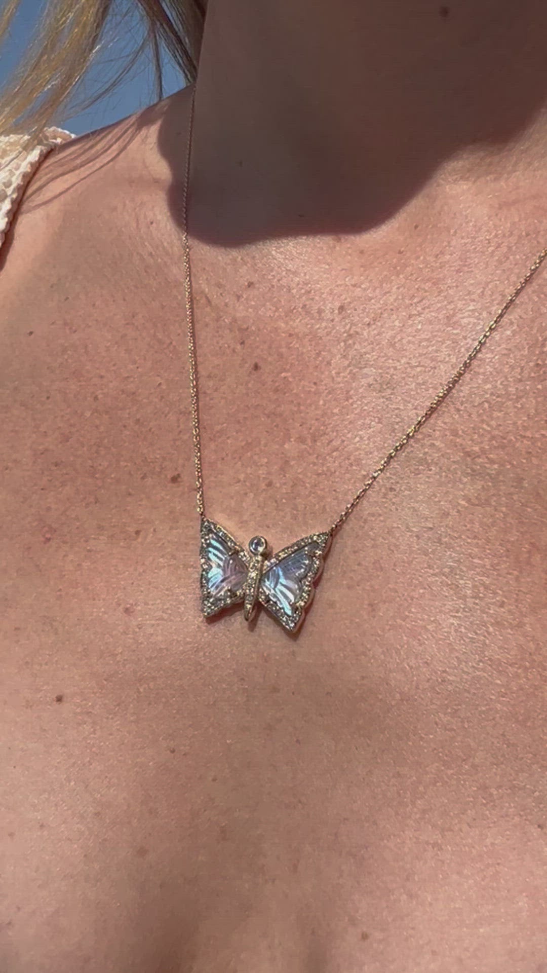 Large butterfly moonstone and diamond necklace